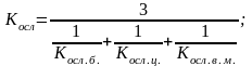 Коефіцієнт ослаблення залежить від тривалості перебуван ня людей на протязі доби на відкритій місцевості, в будинках і виробничих будівлях. В звичайному режимі приймають, що робітники і службовці знаходяться дома / Косл.д./, на роботі в цеху / Косл.ц./ і на відкритій місцевості /Косл.в.м./ по 8 годин протягом доби.