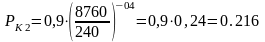 де РП2, РК2 - piвні радіації на початку /tП/ і в кінці /tК/ середньої фази аварії, tП = 10 яіб; tК = 355+10 діб /час у формулу підставляють в годинах/.