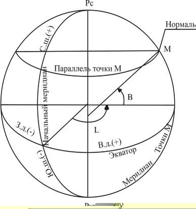 Для определения местоположения точек(объектов) на поверхности референц-эллипсоида применяются геодезические координаты.