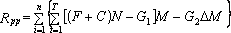 де Rpp — грошова оцінка рекреаційного ресурсу; — рекреаційні об’єкти (санаторії, пансіонати, турбази), згруповані за видами рекреаційної діяльності (санаторно-курортне лікування, туризм і т. д.); t, T — термін розрахунку; — економічний ефект від оздоровлення однієї людини в результаті рекреаційного обслуговування; C — вартість однієї путівки; N — кількість змін або заїздів на рекреаційний об’єкт; G1 — річні експлуатаційні витрати на 1 ліжко-місце в рекреаційному об’єкті; М — загальна кількість місць на об’єктах відповідного виду рекреаційного обслуговування; G2 — одноразові витрати на 1 ліжко-місце при спорудженні рекреаційного об’єкта; ΔM — щорічний приріст ліжко-місць на рекреаційних об’єктах.