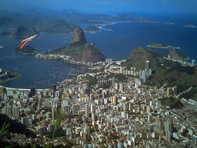 Бразильское плоскогорье невысокое (от 250-300 до 800-900 м) и имеет слабо всхолмленный, почти равнинный рельеф. Даже наиболее высокие останцовые вершины обычно сглажены. Наибольших высот достигают восточные краевые массивы. Они образуют Большой Уступ, двумя большими ступенями спускающийся к океану. Из хребтов нижней ступени выделяются Серра-ду-Мар (1889 м) и расположенная к северу от бухты Гунабара Серра-дус-Органос (2070 м). Близость к Рио-де-Жанейро и Сан-Паулу сделала их излюбленным местом отдыха богатых бразильцев и туристов. Вторую, более высокую ступень Большого Уступа образует Серра-ду-Мантикейра, почти на целый километр возвышающаяся над Серрой-ду-Мар. Здесь расположены самые высокие вершины Бразилии - Бандейра (пик Знамени), 2890 м и Агульяс-Неграс (пик Черных Орлов). По правобережью р. Сан-Франсиску поднимаются до 1500—2100 м заострённые остаточные протерозойские гребни Серра-ду-Эспиньясу (Рис. 2). В жарком влажном климате горные породы быстро разрушаются: более мягкие и рыхлые смываются ливнями, остаются твёрдые. Отдельные глыбы приобрели конусовидную форму, за что получили название «сахарная голова» (Рис.3). Одна из них украшает живописную бухту Рио-де-Жанейро. Синеклизы (в шттах Мараньян и Пиауи, вдоль рек Сан-Франсиску и верхней Параны и др.) представлены обычно пластовыми равнинами, часто с эрозионными уступами типа куэст, а в наиболее приподнятых районах — останцовыми песчаниковыми столовыми плато с крутыми уступами — шападами (они характерны и для нескладчатого чехла фундамента); лишь впадина Параны занята ступенчатым лавовым плато.