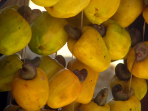 В центре — кустарниковые и саванны — кампос серрадос, формирующиеся на красных грубозернистых почвах. В период дождей они зарастают дерновинно-злаковой растительностью. Растения кампос хорошо приспособились к смене сухого и влажного сезонов, которые длятся примерно по полгода. Листопадные низкорослые деревья и кустарники, произрастающие здесь наряду с вечнозелеными, покрываются мелкой листвой с восковым налетом. Здесь распространены чапарро-курателла, лишейра («наждачное дерево»), мангабейра, млечный сок и плоды которой используются в пищу местными жителями, кажу с плодами (рис. 6), очень богатыми витаминами, а также агавы, кактусы и некоторые виды пальм.