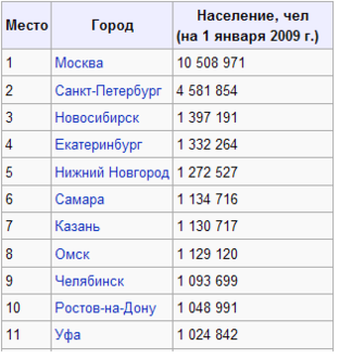 Города-миллионеры РФ (на 01.01.2009 г.)