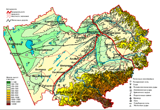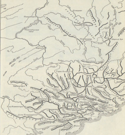 Орографическая схема Алтая и Салаиро-Кузнецкой области: