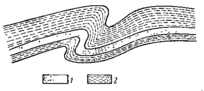 1 – коллектор (песок); 2 – плохо проницаемые породы
