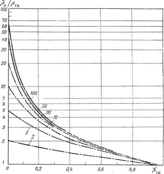 Величину рнп можно определить и графическим путем по палетке, представленной семейством расчетных графиков рп/ргл = f (Хгл) для различных отношений рНП/рГЛ =const (рис. 6).