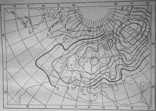 Вероятные величины отклонений температуры от нормы при меридиональном типе циркуляции зимой.
