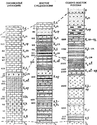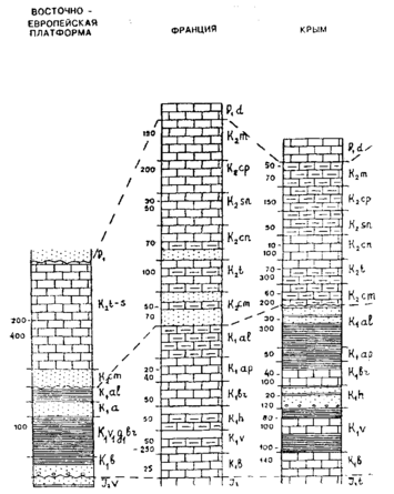 Рис.1. Сопоставление сводных разрезов меловой системы. Условные