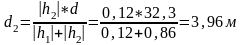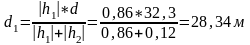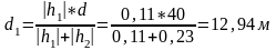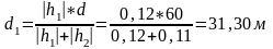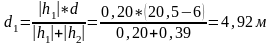 d1, d2 – расстояния от точки нулевых работ соответственно до задней и передней точек;