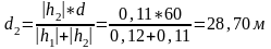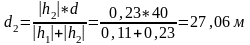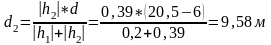 l1 =(300 + 6) = 306 м, l2 = 500 – l1 = 194 м