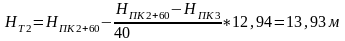 На всех пикетах и промежуточных точках вычисляют проектные отметки по формуле: