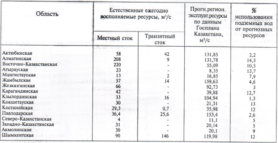 Значительные естественно ежегодно возобновляемые ресурсы подземных вод формируются в Центральном Казахстане- 197м3/с или 6213 млн. м3/год. Наиболее активно процессы формирования подземного стока происходят при этом в низкогорьях Казахского мелкосопочника (гора Ерментау, Кокчетавская возвышенность и др.) вследствие относительно повышенного количества атмосферных осадков, высокой водопроницаемости сильно выветренных, обнажающихся на поверхности палеозойских пород. Хорошими коллекторами подземных вод с интенсивном водообменном служат карбоновые мульды, древние и современные речные долины.