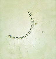 Диатомовым водорослям, в их тяжелых доспехах из кремния, не утонуть - трудно. Жгутиков для движения у них нет. У них есть только один способ замедлить погружение - увеличенная поверхность клетки. Для этой цели обычно служат выросты панциря - длинные колючие щетинки нужны хетоцеросам не только для защиты, они еще и помогают парить в воде. На примере хетоцероса мы видим и другой способ увеличения поверхности - образование колоний-цепочек - десятки клеток плавают, сцепленные друг с другом. Поделилась одна из них - и на одну клетку в колонии стало больше. Так же увеличивает поверхность похожая на лестницу колония диатомеи хемиаулюса Hemiaulus hauckii.