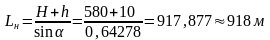 - угол заложения наклонного ствола, который принимаем равным углу залегания рудного тела.