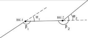 Кути повороту траси визначають, як доповнення до 1800 правого кута за ходом, при повороті лінії вправо за формулою