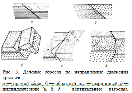 | По углу наклона смесителя | По отношению к простиранию нарушенных горных пород | По отношению наклонов смесителя и нарушенных пород | По направлению движения крыльев (рис.5) | По взаимному расположению | По отношению к времени образования нарушенных разрывами отложений |
