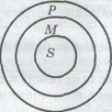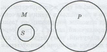 1) воно може бути таким, коли S, входячи в М, повністю виключається із обсягу Р (мал. 3). Тоді із наведених засновків слід було б зробити висновок: "Норми моралі не є правовими нормами" ("Жодне S не є Р");
