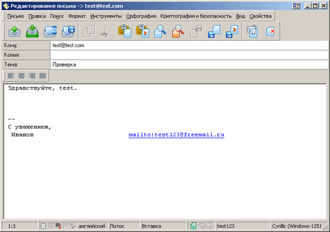 Бланки сообщений – важная часть электронной почты. Непосредственно в них набирается текст письма. Приведем небольшой пример: