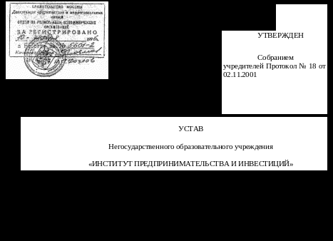 Устав государственной организации утверждается вышестоящим учреждением, а негосударственной - его учредителями, общим собранием акционеров. Пример оформления титульного листа устава приведен в примере 2.