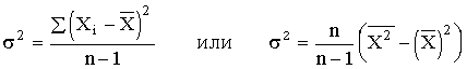 Если вариация оценивается по небольшому числу наблюдений, взятых из неограниченной генеральной совокупности, то и среднее значение признака определяется с некоторой погрешностью. Расчетная величина дисперсии оказывается смещенной в сторону уменьшения. Для получения несмещенной оценки выборочную дисперсию, полученную по приведенным ранее формулам, надо умножить на величину n / (n – 1). В итоге при малом числе наблюдений (< 30) дисперсию признака рекомендуется вычислять по формуле