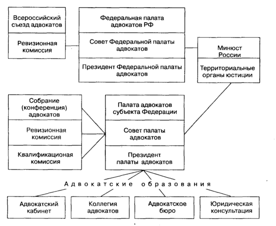 В настоящее время в стране существует множество юридических фирм, бюро, ассоциаций, правовых служб в государственных и негосударственных учреждениях и других организационных форм оказания юридической помощи. Одно из ведущих мест по значимости, объему и содержанию оказываемой помощи занимает разветвленная сеть ассоциаций юристов-адвокатов, осуществляющих защиту и представительство интересов граждан и юридических лиц в конституционном, арбитражном, административном, гражданском и уголовном судопроизводстве.