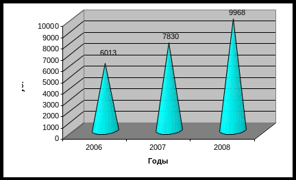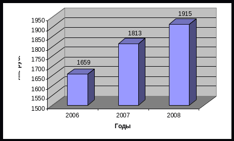 Аграрный сектор экономики остается одним из ведущих в народнохозяйственном комплексе Медведевского района и его влияние на социально-экономическое развитие всего муниципального образования является определяющим. 2008 год характеризуется динамичным ростом производства и реализации сельскохозяйственной продукции. В 2008 году реализовано сельскохозяйственной продукции на 1,86 млрд. рублей, что на 20% больше соответствующего уровня 2007 года. Динамика объема валовой продукции сельского хозяйства в предприятиях района представлена на рисунке 1.