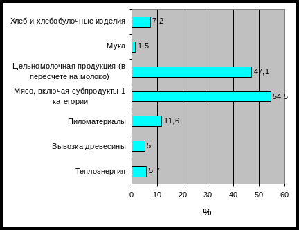 Стабильно работало в 2008 году ЗАО «Краснооктябрьский завод металлических изделий». На переоснащение оборудования предприятием вложено инвестиций около 20,0 млн. рублей. Неплохие результаты по итогам 2008 года можно отметить у ОАО «Марийская мясная компания», которое реализовало промышленной продукции на 291,3 млн. рублей или 118% к уровню 2007 года. Удельный вес района в общереспубликанском производстве основных видов промышленной и продовольственной продукции в 2007 году представлен на рисунке 3.