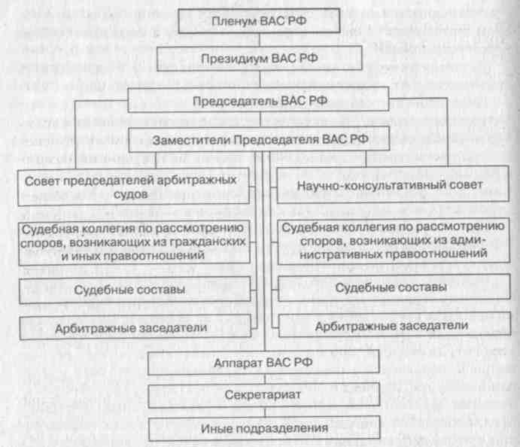 Высший Арбитражный Суд РФ занимает в судебной системе место, аналогичное положению Верховного Суда РФ, являясь в соответствии со ст. 127 Конституции РФ высшим судебным органом. Но их компетенция различается по предметам ведения. Высший Арбитражный Суд РФ решает экономические споры и иные дела, рассматриваемые арбитражными судами, осуществляет в предусмотренных федеральным законом процессуальных формах судебный надзор за их деятельностью и дает разъяснения по вопросам судебной практики.