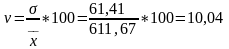 Коэффициент вариации определяется делением среднего квадратического отклонения на средний уровень признака: