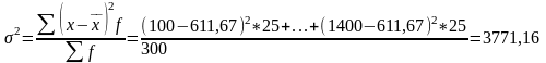 Дисперсия – это средняя из квадратов отклонений значений признака от среднего уровня: