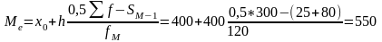 - сумма накопленных частот до начала изучаемого (медианного) интервала.
