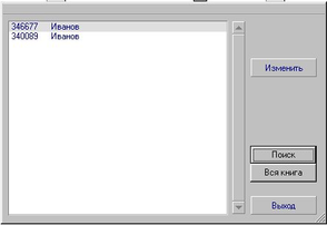 Результаты поиска выводятся в том же окне, где и основная БД. Но в этот момент основная БД адресной книги будет невидима для удобства пользователя.