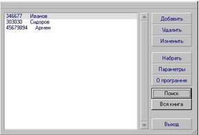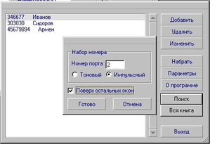Данная программа не содержит сложных настроек. Всё что пользователь может настроить – это параметры модемы – порт соединения и тип звонка (тоновый или импульсный в зависимости от тока какой звонок поддерживает АТС) Подробное описание программы находится в файле readme.txt