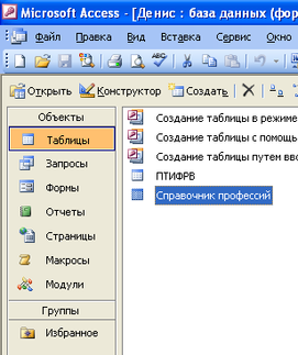 откройте двойным щелчком таблицу «Справочник» в списке таблиц (рис 3.)
