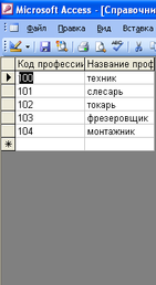 двойным щелчком откройте таблицу «Справочник», появляется форма таблицы «Справочник»