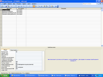 осуществите описание полей таблицы, как показано на рисунке (рис. 1)
