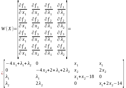 L (X,λ) = - x12 - x22 + 2х2 + λ1 (x1 + x2 - 18) + λ2 (x1 + 2x2 - 14)