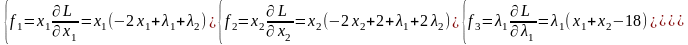18x1 - 90 - λ2 = 0, λ2 = 18х1 - 90