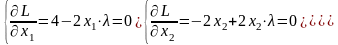 L (X,λ) = 4x1 - x22 - 12 + λ (x12 + x22 - 25)