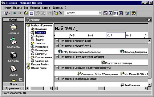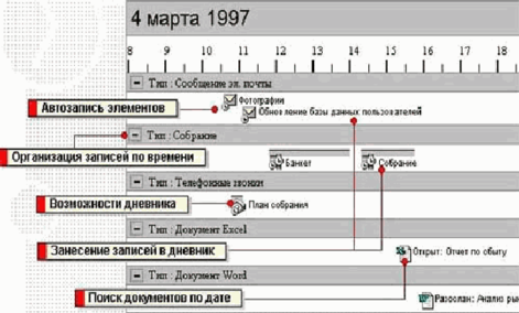 3. Назначение и основные функции папки «Дневник» MS Outlook 97