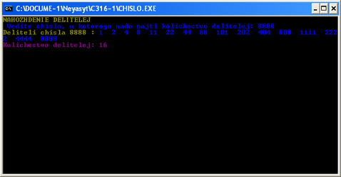 write('NAHOZHDENIE DELITELEJ');