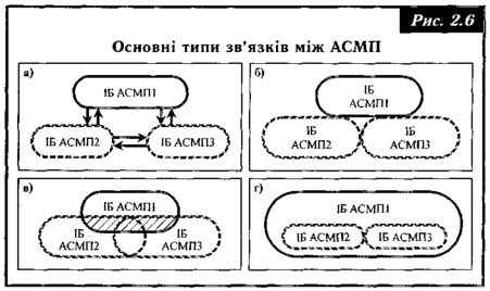 Виділяють такі основні типи зв'язків між АСМП: