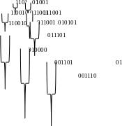 Для В =11, С = 1101, D = 01, E = 1001, F = 111001, F1 = 010101, G = 110, H = 101, А = 010000 будет новое А = 010001.