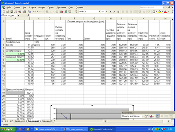Доповнити модель побудовану при виконанні завдання 1, включивши в неї пропорційну залежність між ціною і попитом. Оцінити модель за допомогою аналізу "Що-якщо", знайти точку беззбитковості, провести аналіз чутливості та аналіз компромісів. Відповідні моделі представити у вигляді електронних таблиць Excel в режимі обчислень та в режимі формул.