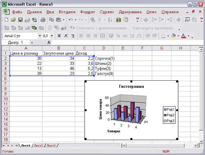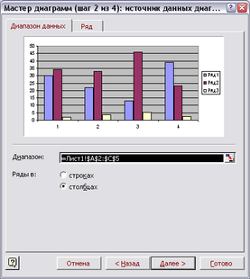 Щелкните по кнопке Готово. Диаграмма появится на рабочем листе.