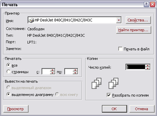 Выберите команду Файл/Печать или нажмите комбинацию клавиш Ctrl+P. Появится диалоговое окно Печать.