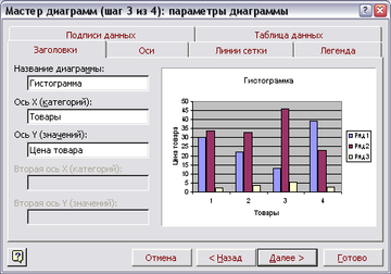 В данном окне можно усовершенствовать диаграмму, используя соответствующие вкладки. Например, гистограмма может принять такой вид (рис.24, 25). Щелкните по кнопке Далее>. Появится последнее диалоговое окно мастера диаграмм.