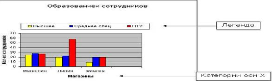 Легенда - это область, содержащая имена, которые используются для обозначения отображаемых элементов указанных категорий данных.