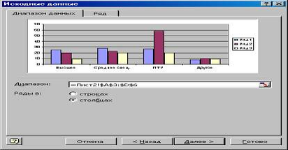 Мастер диаграмм создает диаграмму последовательно шаг за шагом.