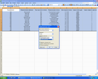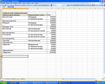 2) построить соответствующую сводную таблицу, предусмотрев одновременно отслеживать итоги и по виду полиса.